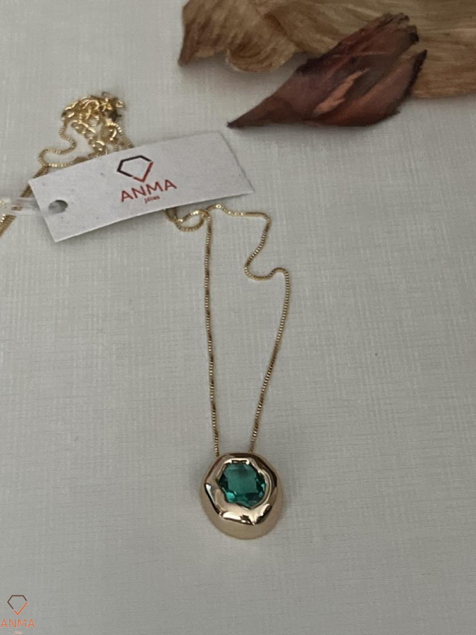 COLAR PINGENTE ORGANICO COM ZIRCÔNIA VERDE OURO 18K - Confeccionados em metal nobre (sem níquel em sua composição) e banhados a ouro 18k, rodio branco Garantia de 01 ano banho